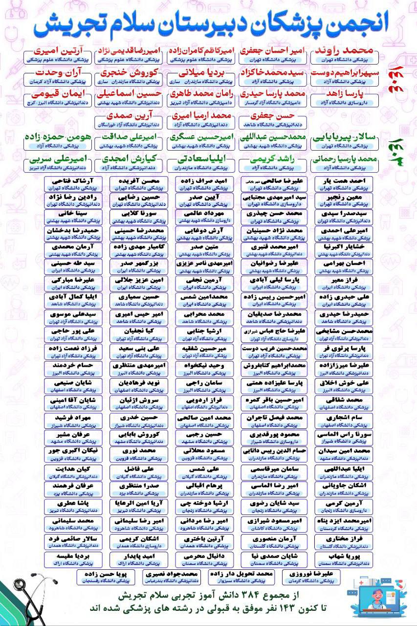 ١٤٣ قبولی پزشکی؛ مسیر افتخار سلام تجریش