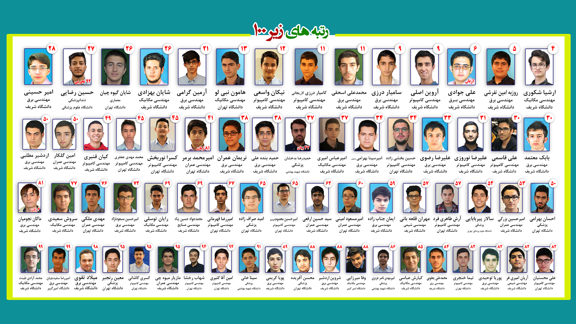 کیان قنبری رتبه ۴۹