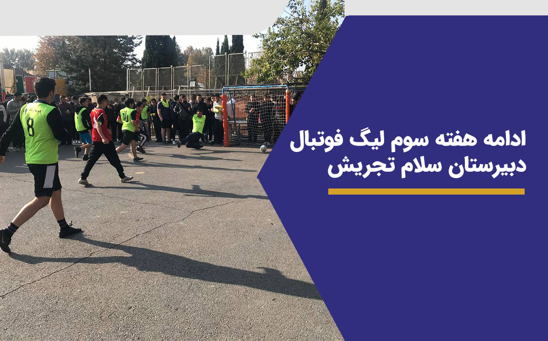 ادامه هفته سوم ليگ فوتبال دبيرستان سلام تجريش با رقابت های تنگاتنگ برگزار گردید.