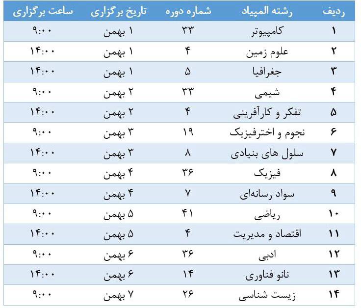 «تاریخ رسمی آزمون‌های مرحله اول المپیاد»